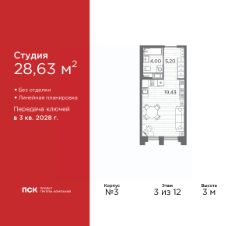 Дом монолитный, двухподъездный, высотой 12 этажей. Квартира находится во 2-й секции в корпусе 3. На этаже 6 квартир. В подъезде 1 пассажирский и 1 грузовой лифт. Начало строительства - 2 квартал 2025 года. Окончание строительства - 3 квартал 2028 года. Оформление сделки по договору долевого участия.
