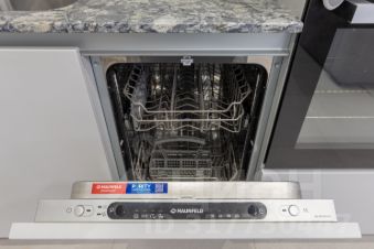 варочная панель Indesit, мощная вытяжка на 40м2, посудомоечная машина, духовой шкаф, нерж.микроволновая печь, холодильник LG, мойка нерж Blanco, нержавеющий смеситель с подачей отфильтрованной питьевой воды.