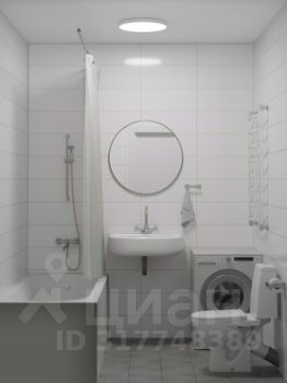 В отделке санузла также использованы светлые оттенки. Функциональная мебель и сантехника подобраны с учетом эргономики помещения, создавая максимальный комфорт при использовании.