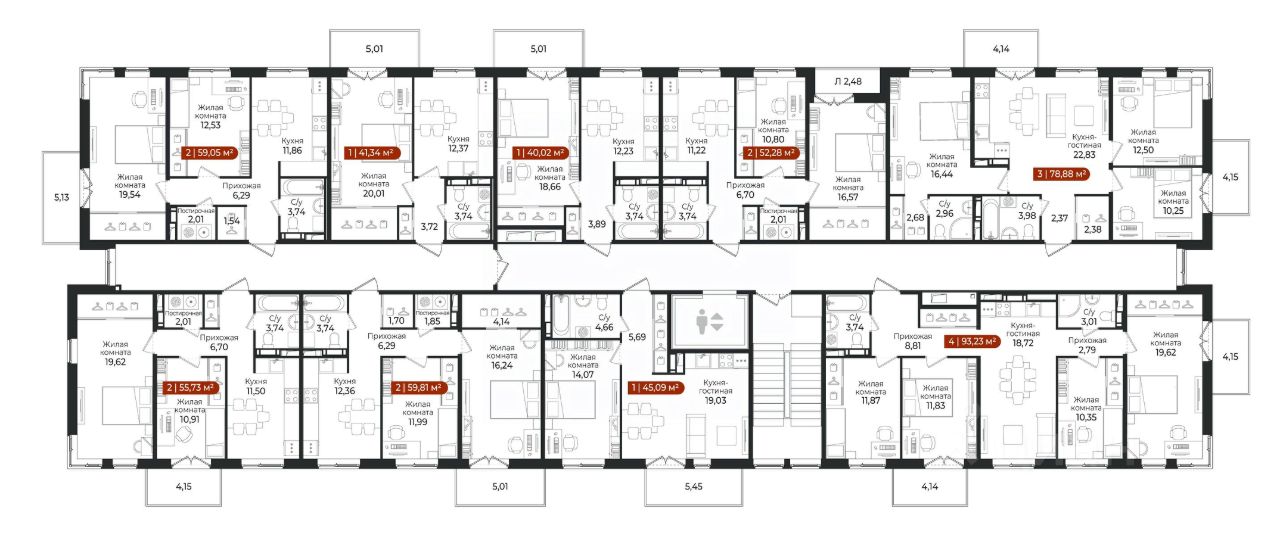 Выбирайте уютную однокомнатную или просторную четырехкомнатную квартиру, с площадью кухни до 23 м2 с гардеробной или постирочной.