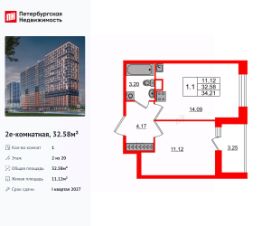 Удобная, классическая, функциональная европланировка, большая кухня-гостиная 14.21 м², просторная прихожая 4.17 м². Общая площадь квартиры - 32.58 м², жилая 11.12 м², высота потолка 2.75 м.