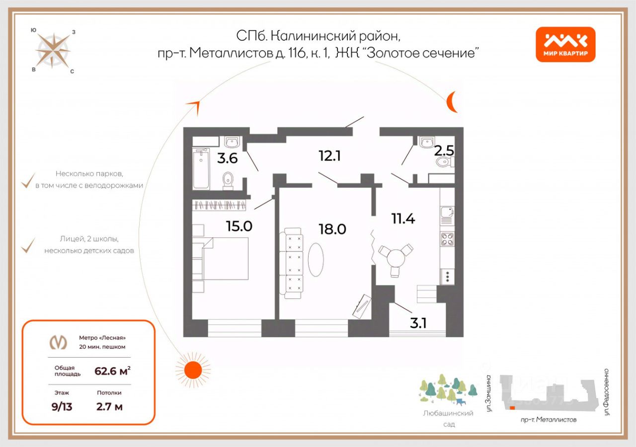 Квартира отлично подойдёт как для проживания семьи с детьми, так и для инвестиции под аренду.