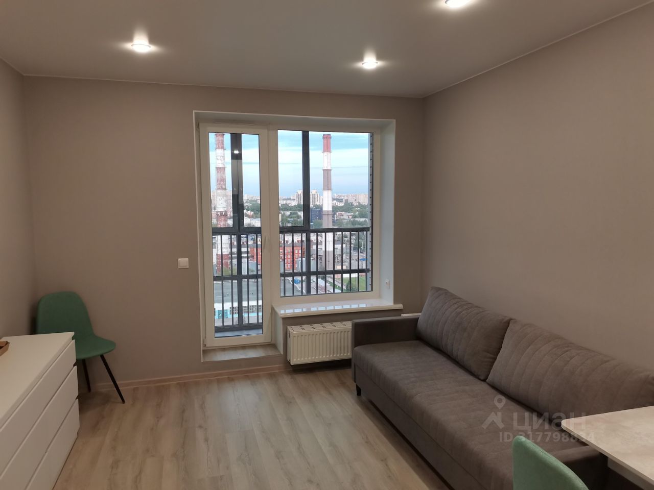 В студии сделан качественный, дорогой ремонт, полностью меблирована, заезжай и живи. Квартира находится на 19 этаже, откуда открывается красивый вид на город.