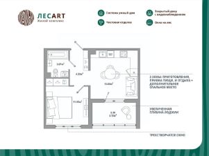 Продаётся 1-комнатная квартира 119, общей площадью 38.11 кв.м., на 6. Дом комфорт-класса, 12 этажей, в окружении леса и малоэтажной застройки. Проект с умным домом. Передача квартир в апреле 2026г.