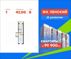 В продаже квартира площадью 42.05 кв. м без отделки на 8 этаже 16 этажного дома. Квартира находится в 4835 корпусе.