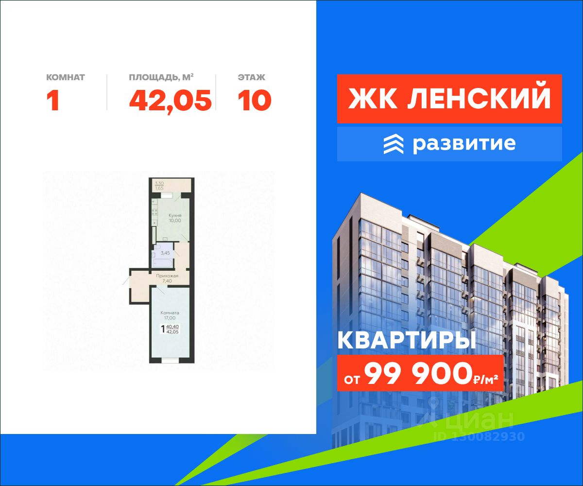 В продаже квартира площадью 42.05 кв. м без отделки на 10 этаже 16 этажного дома. Квартира находится в 4835 корпусе: