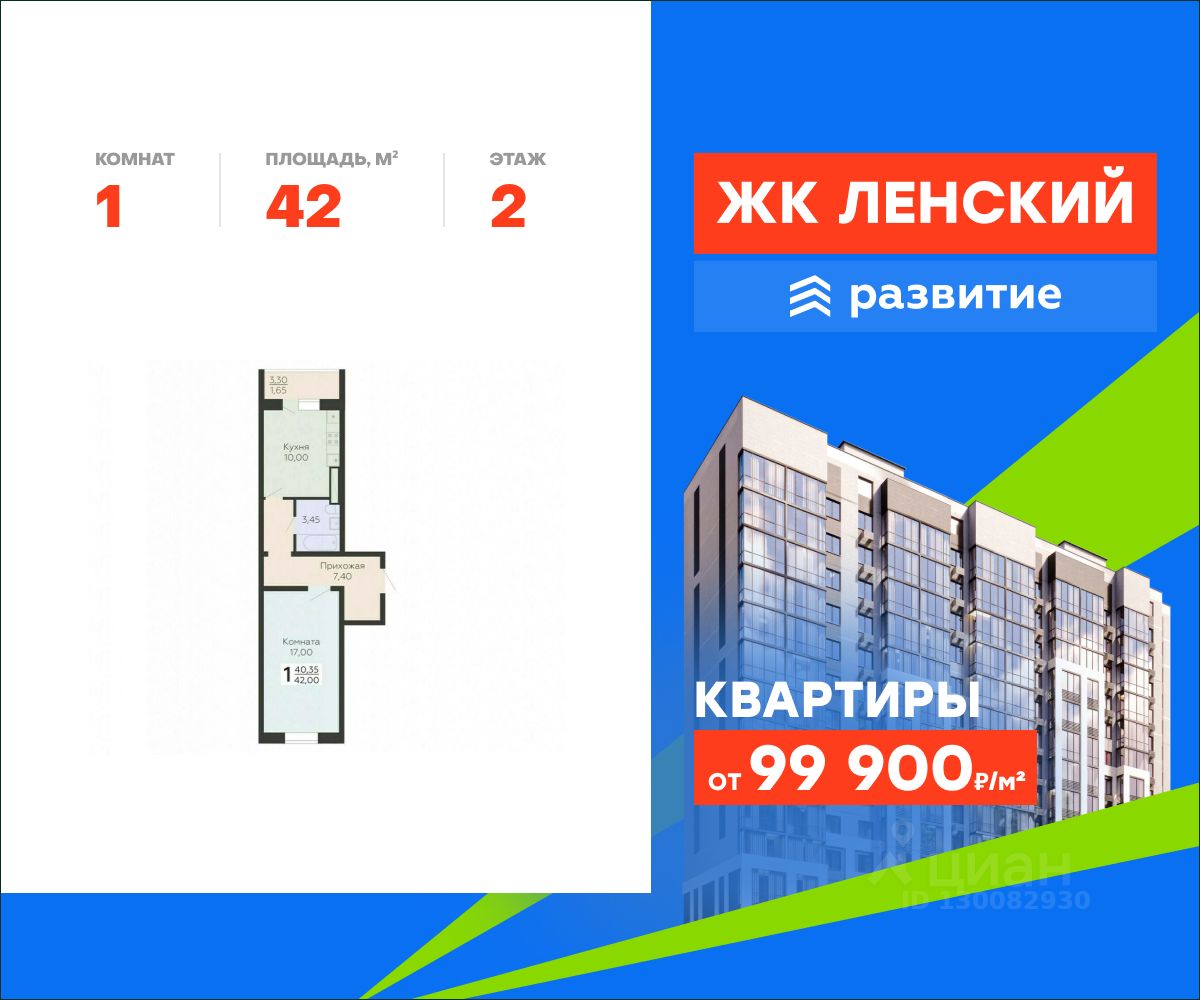 В продаже квартира площадью 42.00 кв. м без отделки на 2 этаже 16 этажного дома. Квартира находится в 4834 корпусе: