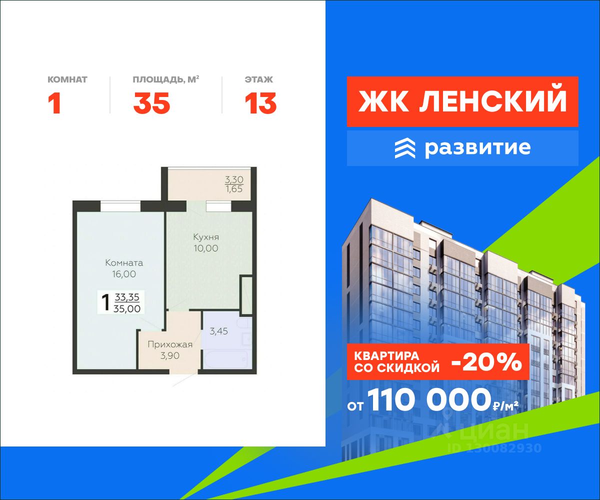 В продаже квартира площадью 35.00 кв. м с отделкой white box на 13 этаже 16 этажного дома. Квартира находится в 4834 корпусе: Жилой комплекс "Ленский" - место, где встречаются природа и городская среда, а умиротворение загородной жизни сочетается с комфортом. Проект располагается на северо-востоке Санкт-Петербурга, в Южном микрорайоне Всеволожска, в 16 км от КАД, с удобным выездом на Колтужское шоссе и Дорогу Жизни. В его состав входят два 18-этажных корпуса с видами на Колтушские высоты, сервисы повседневной инфраструктуры, собственный приватный двор, просторный паркинг для жителей и гостей. Девелопер проекта - федеральный застройщик ГК "Развитие". Транспортная доступность На автомобиле: • 30 мин до станции метро "ул. Дыбенко" • 35 мин до центра Санкт-Петербурга Архитектура Архитектурный облик отличается современным дизайном. Панорамные окна с большой площадью остекления наполняют квартиры светом, актуальная финская технология Peikko защищает квартиры от промерзания даже в северном климате. Дома прочные, долговечные, их конструкция гарантирует тёплый микроклимат зимой, прохладу летом и отличную звукоизоляцию. Планировочные решения Функциональные планировки отличаются простотой и эргономичностью, пространство эффективно используется даже на небольшой площади. К кухне примыкает просторная лоджия с панорамным остеклением, во всех двух- и трехкомнатных квартирах - по два санузла. Все квартиры сдаются с отделкой white box, которая позволяет существенно сократить стоимость и сроки ремонта. По желанию доступны варианты чистовой отделки под ключ: "комфорт" и "бизнес" с использованием современных материалов. Благоустройство - приватный двор без машин; - всесезонное озеленение; - спортивный корт для футбола и баскетбола; - детские площадки с мягким покрытием; - площадка для настольного тенниса; - скамейки и беседки для отдыха по всему периметру; - прогулочные и велосипедные дорожки в тени деревьев; - сквозные парадные с большими окнами; - просторная входная группа на уровне земли; - колясочные помещения; - торговая галерея в шаговой доступности. Окружение - 5 парков: заповедник "Колтушские высоты", парк "Софиевка", "Румболовский", "Кенша", Державинский и Алексеевский парки. За 5-10 минут можно добраться транспортом до Песчанки и Петропавловского парка. Ковалевский лесопарк выделяется прекрасными экотропами, зонами для пикников и велодорожками, а Ждановские озера - благоустроенными пляжами; - рядом Колтушинский фреш-маркет с фермерскими продуктами и крупный ТЦ "Юбилейный", где работают более 70 магазинов, кинотеатр и фуд-корт; - 10 детских садов, начальная и средняя школы, центры дополнительного образования, творческие секции; - в ближайшей доступности фитнес-центры, бассейн, теннисный клуб и даже центр верховой езды; - культурные и знаковые места: Музей-усадьба "Приютино", музей "Дом Авиаторов", мемориальный комплекс "Дорога Жизни", многочисленные пешеходные маршруты.