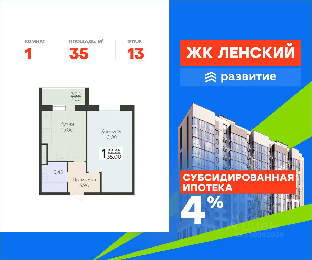 В продаже квартира площадью 35.00 кв. м с отделкой white box на 13 этаже 16 этажного дома. Квартира находится в 4834 корпусе.