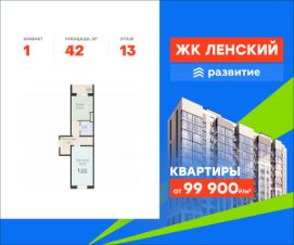 В продаже квартира площадью 42.00 кв. м с отделкой white box на 13 этаже 16 этажного дома. Квартира находится в 4834 корпусе.
