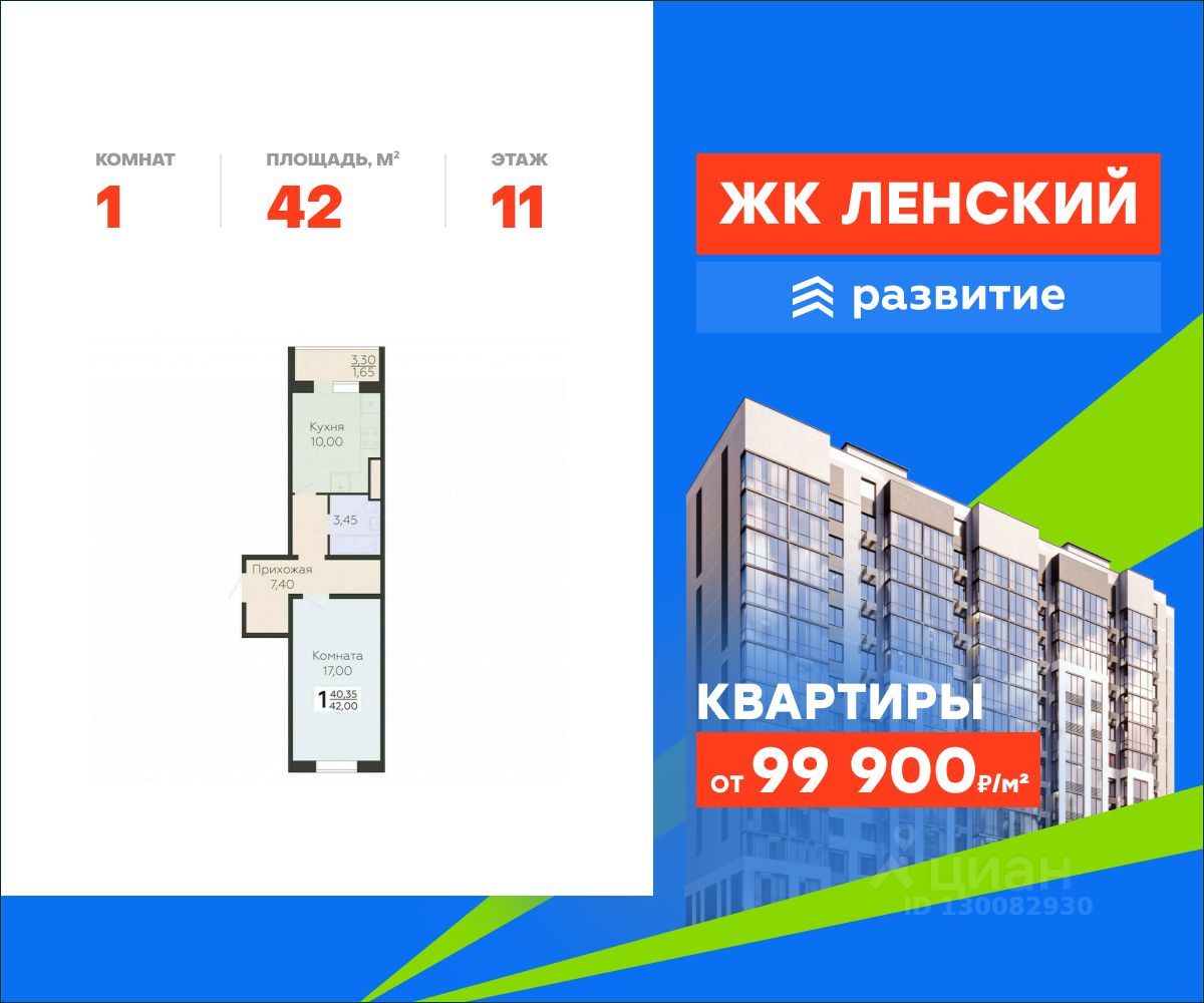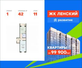 В продаже квартира площадью 42.00 кв. м с отделкой white box на 11 этаже 16 этажного дома. Квартира находится в 4834 корпусе: