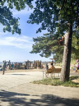 Благоустроенная территория ЖК "Bereg. Курортный" на первой линии у воды с перголами, зонами отдыха и лежаками добавит умиротворенного настроя в дни пребывания. Все закаты будут перед вами. Исторический парк "Дубки", бескрайний культовый для Петербурга Сестрорецкий пляж одноименного курорта в пешей доступности, также как и вся инфраструктура центра города (вкл. зону каршеринга). И одновременно — в лесу...