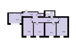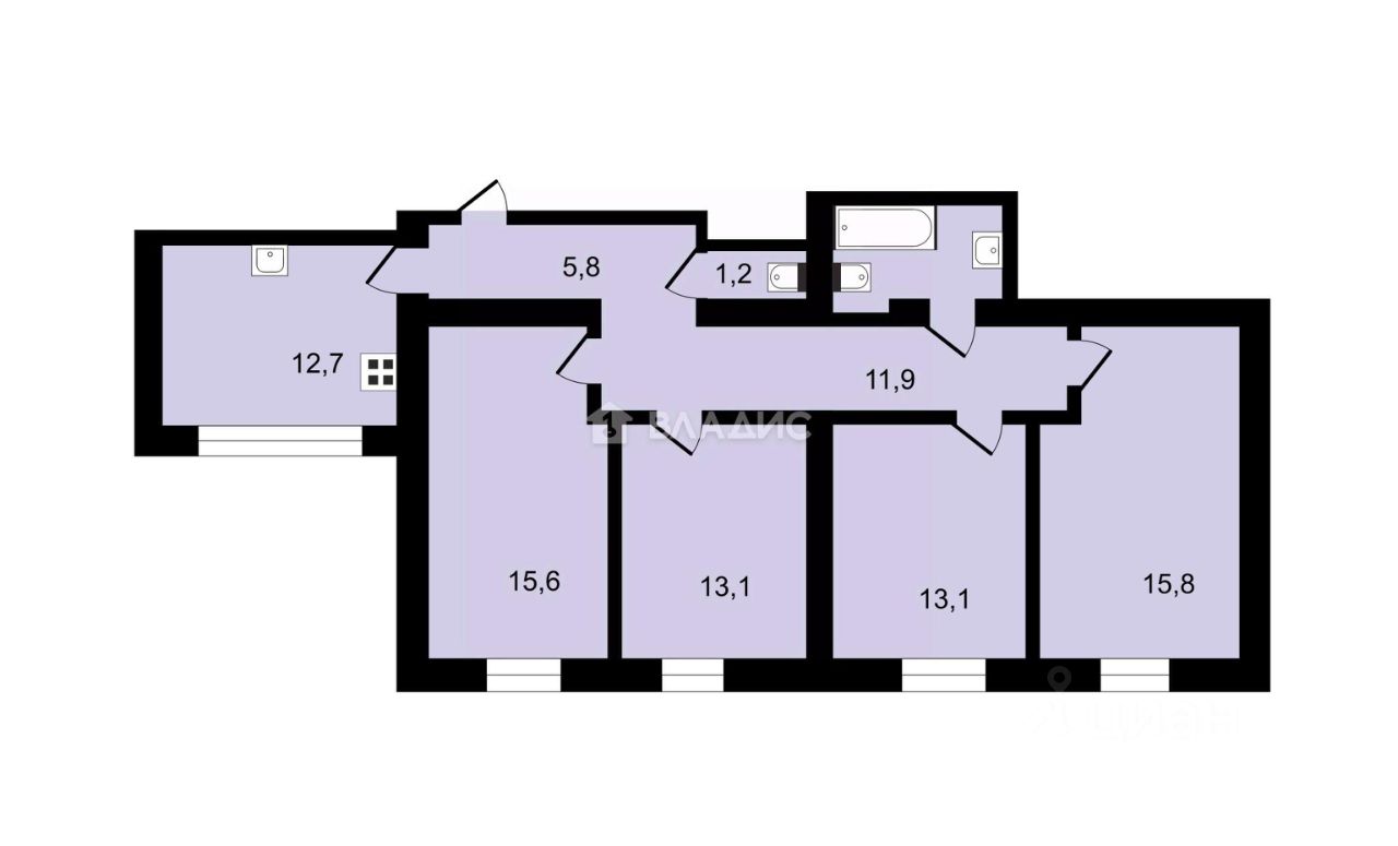 - удачная планировка: комнаты правильной формы 15,6+13+13+15,8 м кв., квадратная просторная кухня 12,7 м кв.;