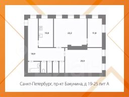 Эргономичная планировка: квадратная кухня - 10 кв.м, комнаты - 23 кв.м+22,8 кв.м+11,8 кв.м
