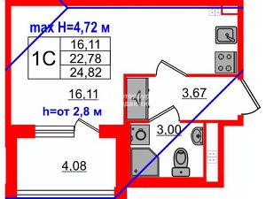 - Высота потолков до 4.72 м метров позволяет создать полноценный второй уровень — идеальное решение для обустройства спальни или рабочего кабинета.