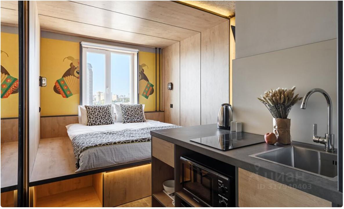 Апартамент площадью 15 кв.м. находится на 6-м этаже, передается уже с готовой отделкой, полностью укомплектован мебелью и техникой (включая кухню с посудой, плитой, холодильником и микроволновой печью, 2 спальных места, места для хранения, кондиционер, телевизор, отдельный санузел, и прочее), и можно сразу использовать его после покупки.