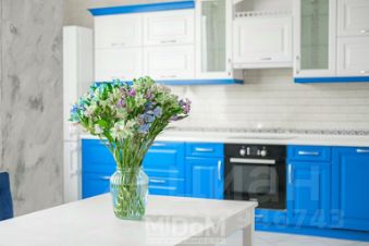 Большая просторная кухня-гостиная почти 20 м2 дает возможность хозяйке готовить свободно и с удовольствием, а всей семье встречаться за общим столом, не стесняя друг друга.