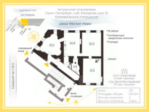 - Два входа. Первый парадный с набережной Макарова с личной исторической пологой лестницей ( 70м2). Второй "черный" со двора.