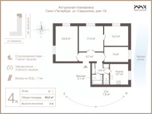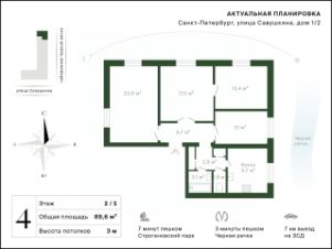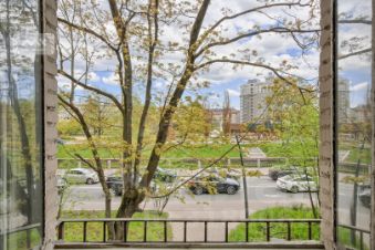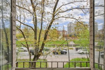 Дом с железобетонными перекрытиями, без лифта, но квартира расположена на комфортном втором этаже. Потолки высотой 3 метра придают пространству ощущение воздуха и объёма. Главное достоинство — вид на три стороны света: из окон открываются панорамы зелёного двора и Чёрной речки.