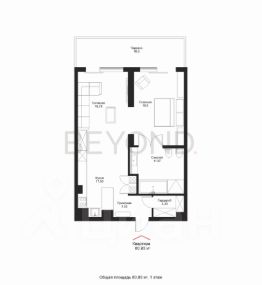 Апартаменты площадью 83,7 кв. м, расположенные на 1 этаже, имеют выход на террасу и во внутренний двор. Резиденция включает в себя спальню, гостиную и зону кухни со встроенной техникой компании Miele, одним санузлом и гардеробной для хранения одежды. Отделка в санузле выполнена из мрамора и оникса, установлена сантехника производителя Villeroy Boch. В спальне и кухне-гостиной напольное покрытие сочетает ковролин и керамогранит, отделка стен выполнена из шёлковых обоев. Системы хранения из массива дерева подчеркивают элегантность и благородство внутренней отделки апартаментов.