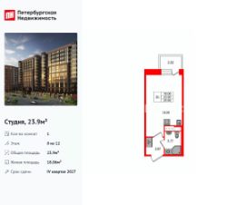 Продается уютная студия от застройщика в жилом комплексе "Setl Лофт" в престижном Московском районе.