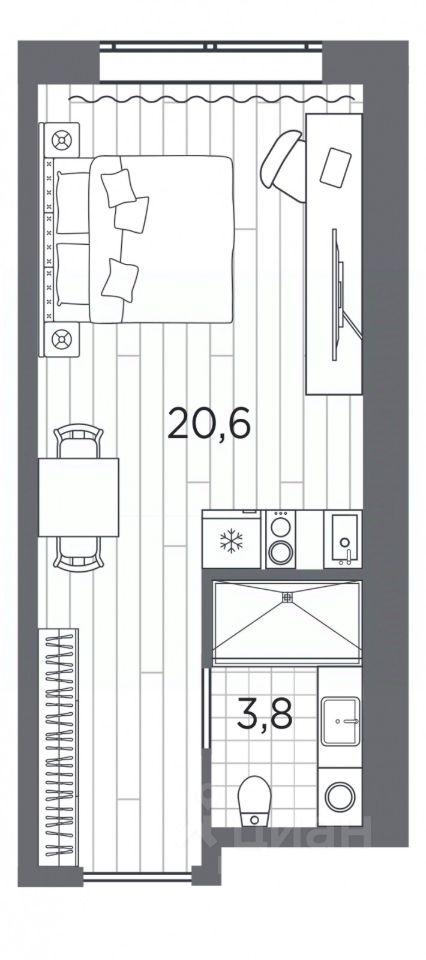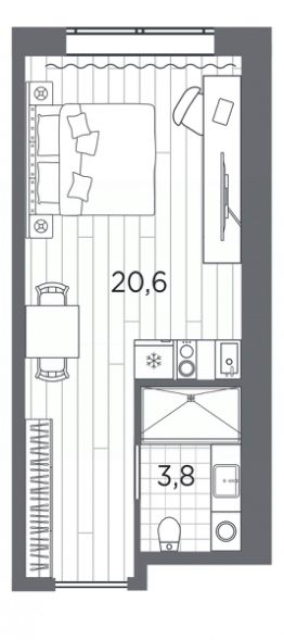 Продаются 1-комн. апартаменты-студия с отделкой в ЖК "Industrial AVENIR" на 4 этаже. Общая площадь: 24.4 кв.м., площадь гостиной 20.6 кв.м., из которых 5 кв.м. выделено под кухонную зону. Все окна выходят на одну сторону. В апартаментах один совмещенный санузел. Высота потолков 2.5 м.