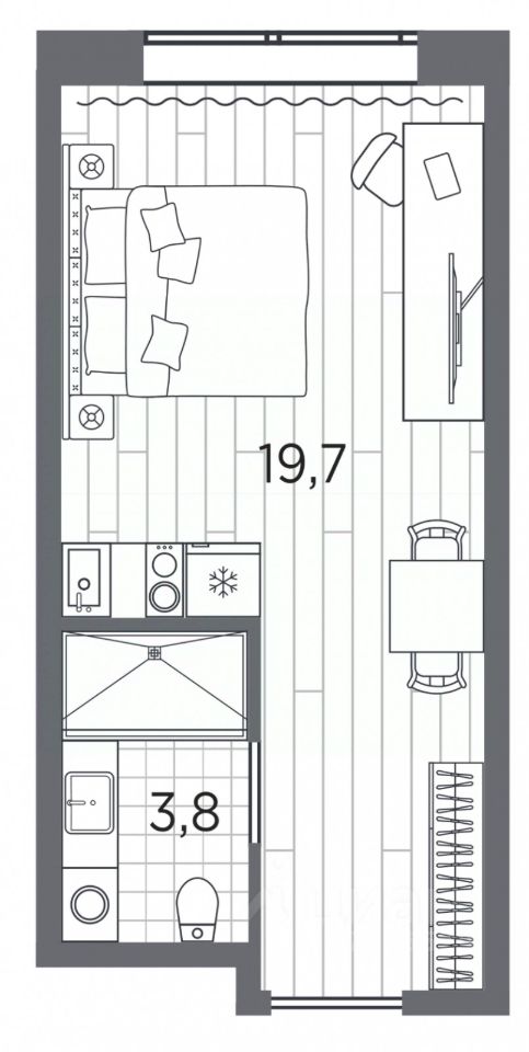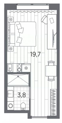 Продаются 1-комн. апартаменты-студия от застройщика с отделкой в ЖК "Industrial AVENIR" на 6 этаже. Общая площадь: 23.5 кв.м., площадь гостиной 19.7 кв.м., из которых 5 кв.м. выделено под кухонную зону. Все окна выходят на одну сторону. В апартаментах один совмещенный санузел. Высота потолков 2.5 м.
