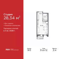 Дом монолитный, двухподъездный, высотой 12 этажей. Квартира находится во 2-й секции в корпусе 3. На этаже 6 квартир. В подъезде 1 пассажирский и 1 грузовой лифт. Начало строительства - 2 квартал 2025 года. Окончание строительства - 3 квартал 2028 года. Оформление сделки по договору долевого участия.