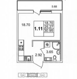 18,7 м²