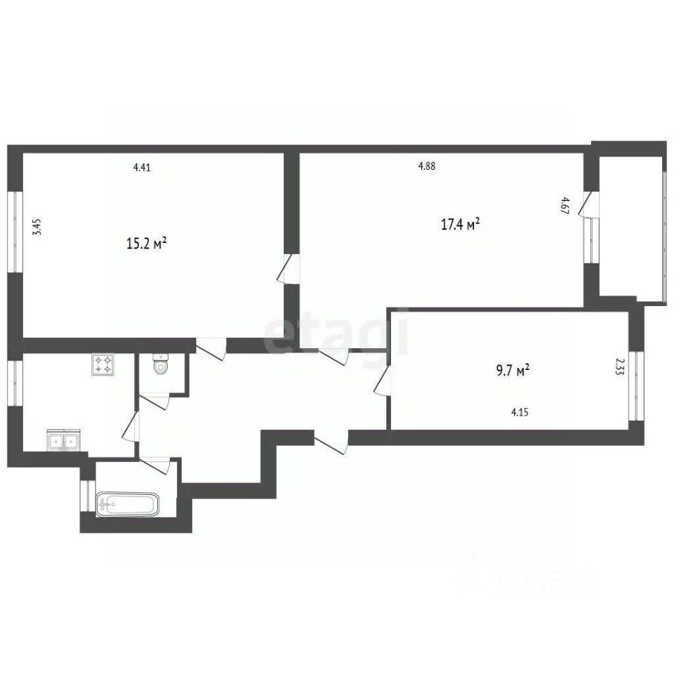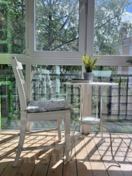 Квартира отличается продуманной планировкой: кухня, гостиная, две изолированные спальни, раздельный санузел и просторный застеклённый балкон 4,5 м² с панорамным остеклением и видом во Высота потолков — 3,1 м, что создаёт ощущение простора. В доме есть лифт, на этаже всего две квартиры, что обеспечивает приватность.