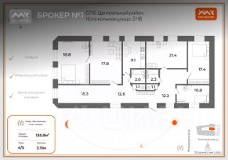 Арт. 105967706 Просторная 3-комнатная квартира в самом сердце Санкт-Петербурга!