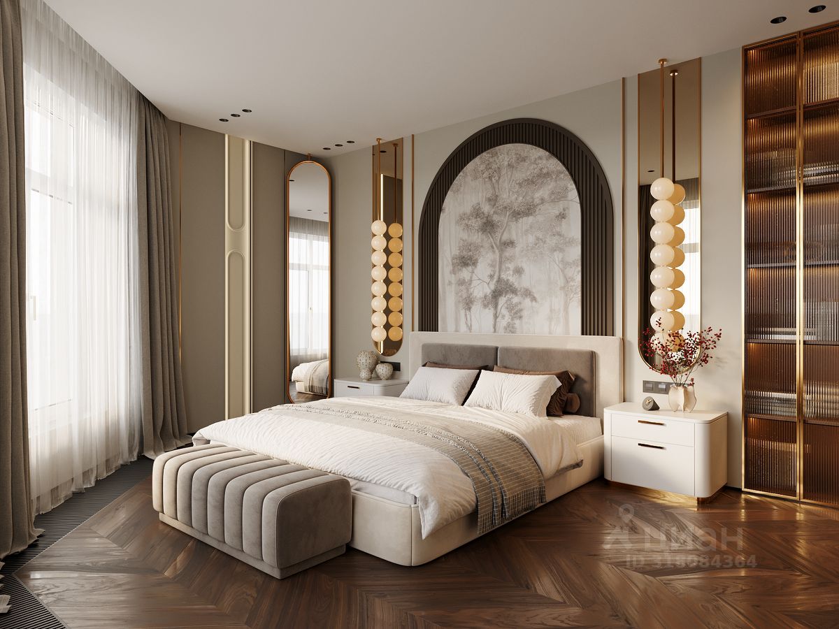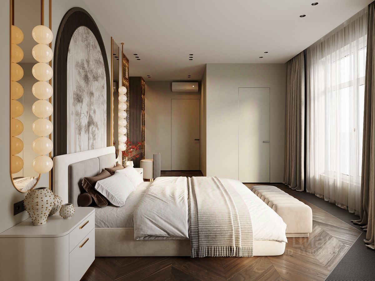 - видовая большая мастер-спальня с двумя окнами, с гардеробной и ванной комнатой