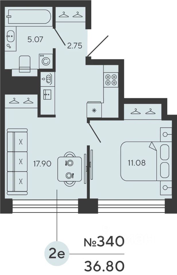 Квартира 340 в корпусе Cuprum проекта бизнес-класса "BASHNI ELEMENT"