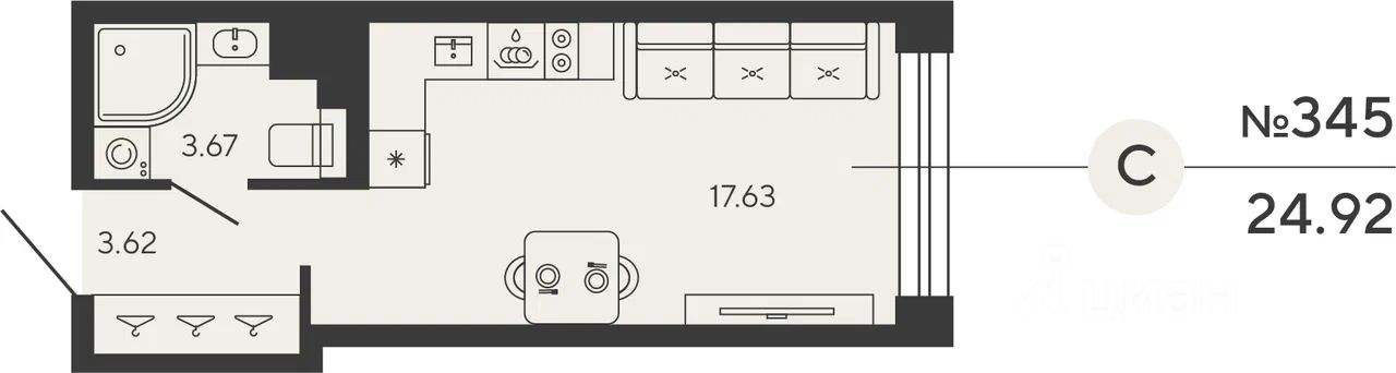 Квартира 345 в корпусе Cuprum проекта бизнес-класса "BASHNI ELEMENT"