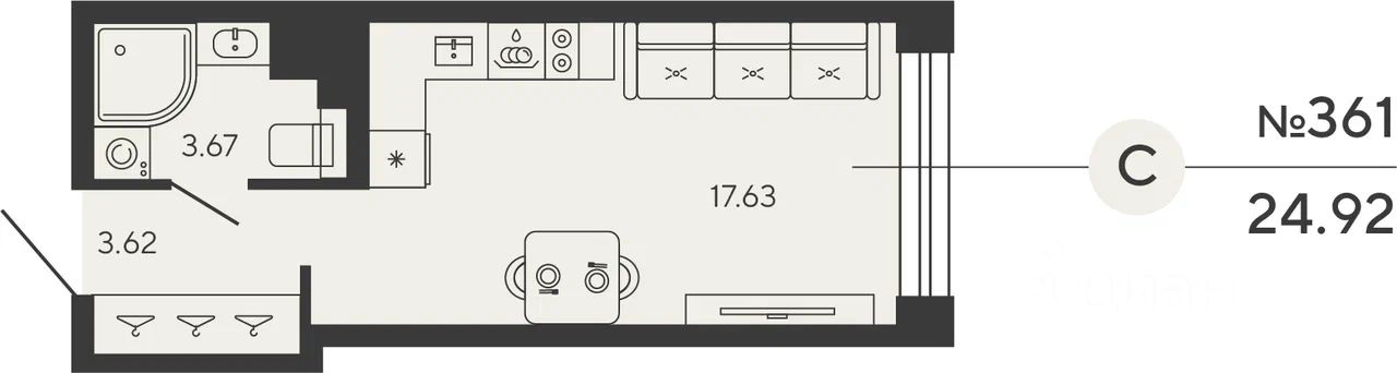 Квартира 361 в корпусе Cuprum проекта бизнес-класса "BASHNI ELEMENT"