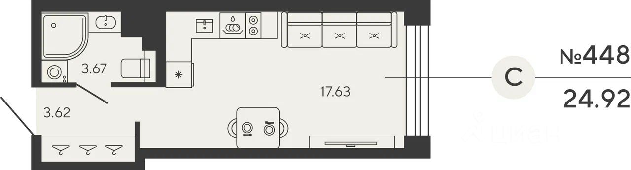Квартира 448 в корпусе Cuprum проекта бизнес-класса "BASHNI ELEMENT"