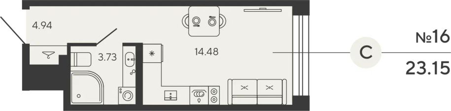Квартира 16 в корпусе Carbon проекта бизнес-класса "BASHNI ELEMENT"