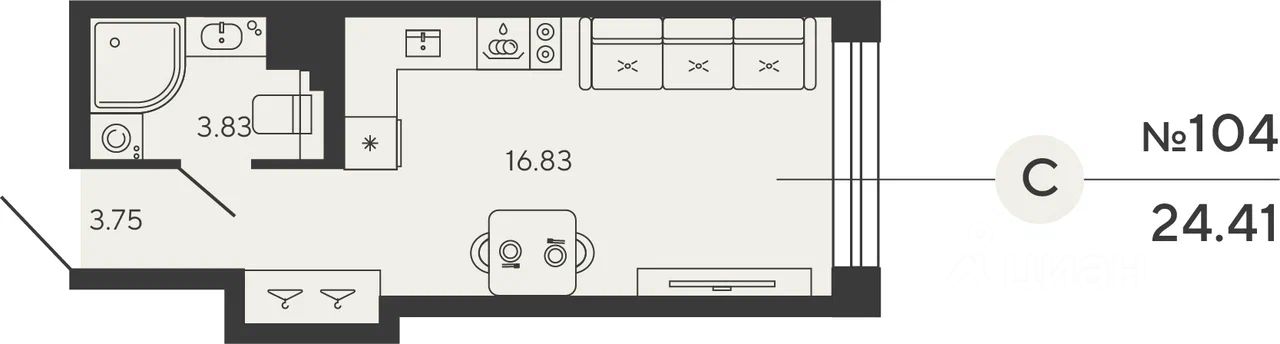 Квартира 104 в корпусе Carbon проекта бизнес-класса "BASHNI ELEMENT"