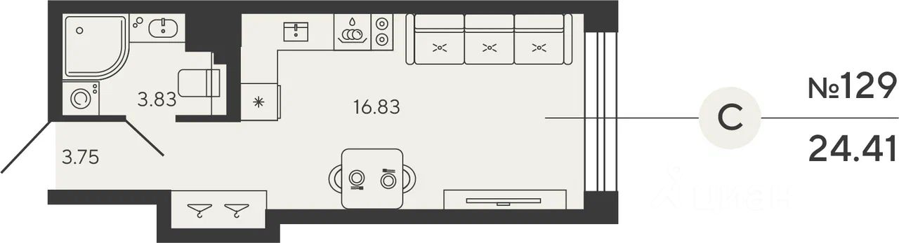 Квартира 129 в корпусе Carbon проекта бизнес-класса "BASHNI ELEMENT"