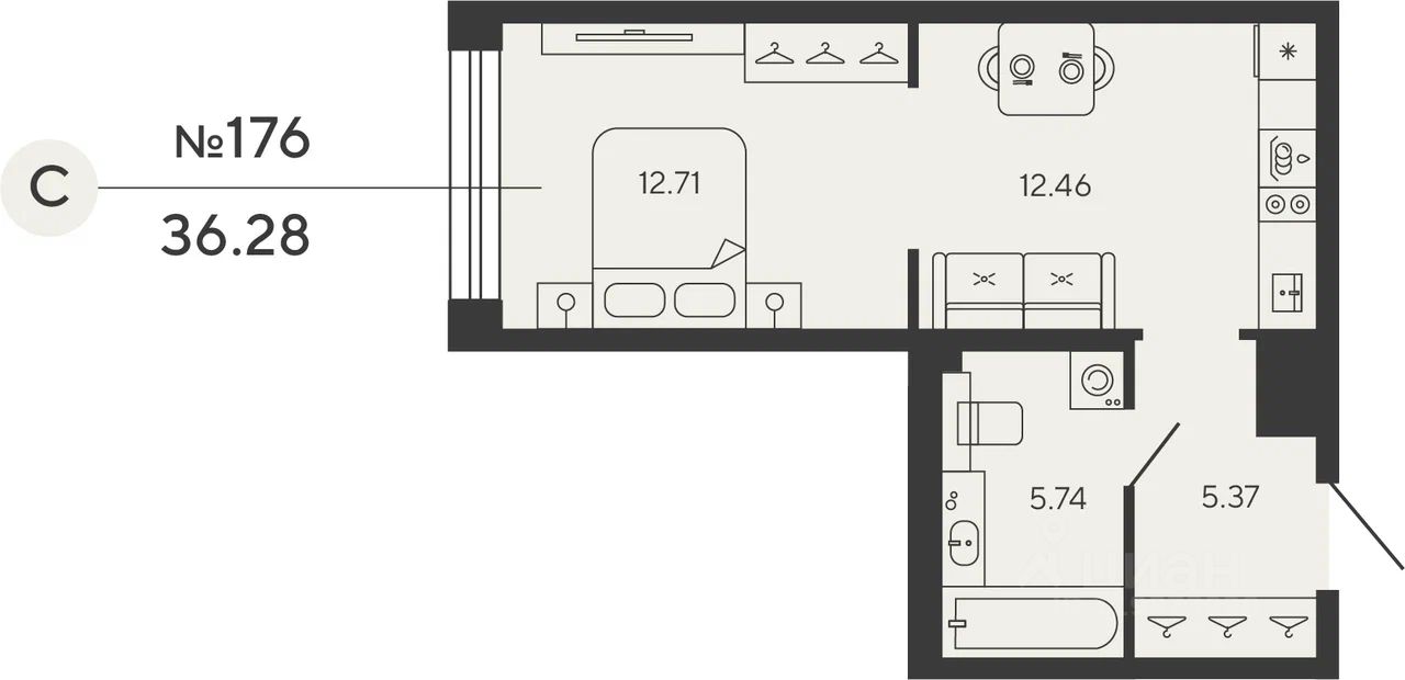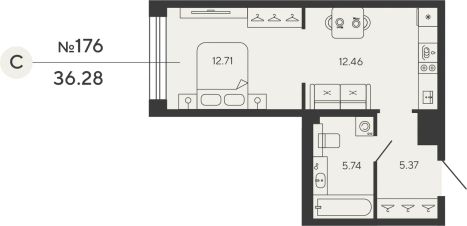 Квартира 176 в корпусе Carbon проекта бизнес-класса "BASHNI ELEMENT"