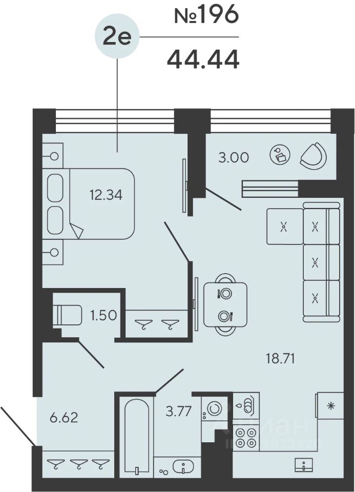Квартира 196 в корпусе Carbon проекта бизнес-класса "BASHNI ELEMENT"