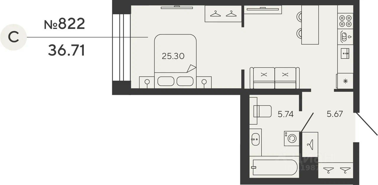 Квартира 822 в корпусе Platina проекта бизнес-класса "BASHNI ELEMENT"