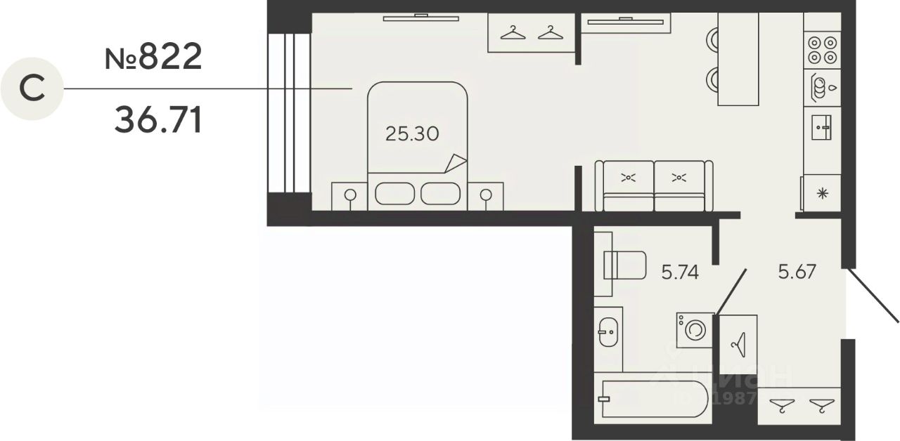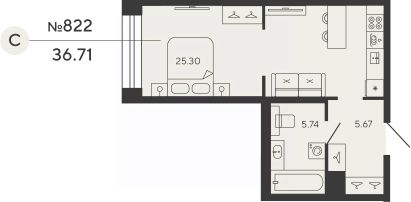 Квартира 836 в корпусе Platina проекта бизнес-класса "BASHNI ELEMENT"