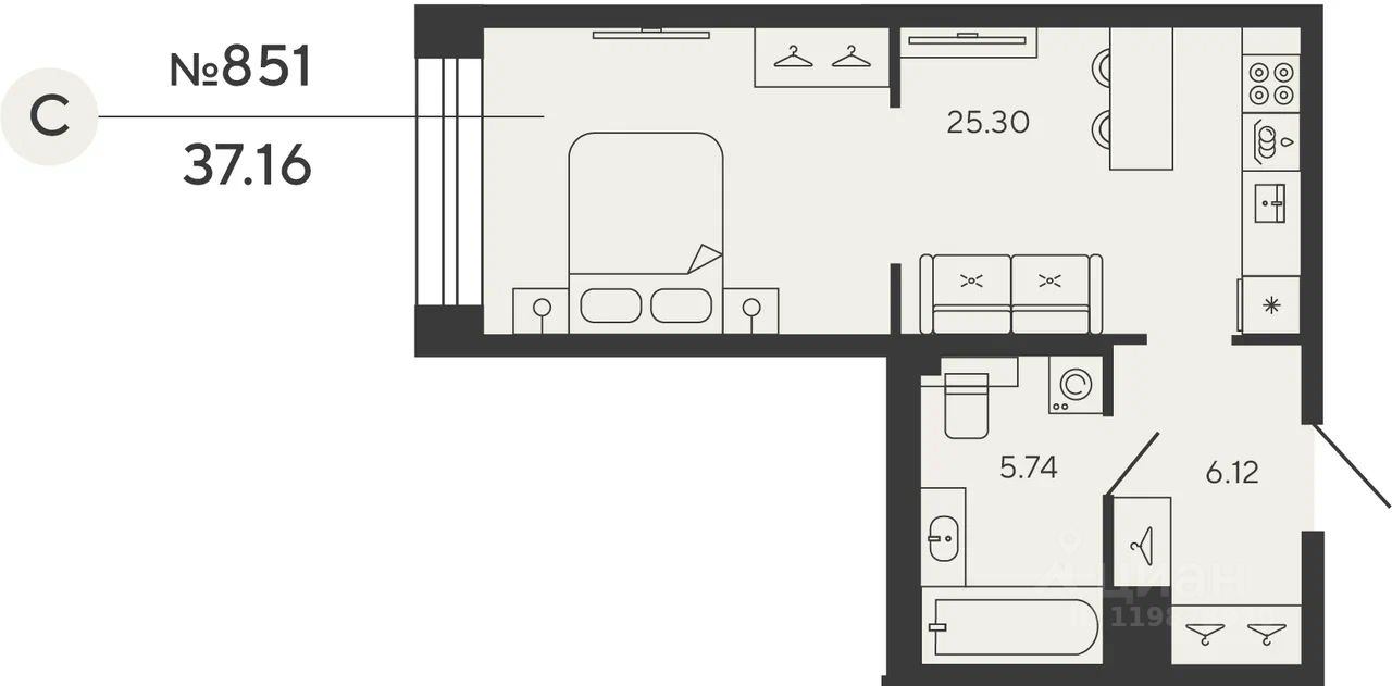Квартира 851 в корпусе Platina проекта бизнес-класса "BASHNI ELEMENT"