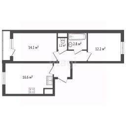 Квартира расположена на 22 этаже. Евро- 3 подразумевает из себя огромную кухню-гостинную 16.5 кв.м. и 2 комнаты 14,1 кв.м. и 12.2 кв.м. соответсвенно. Удобная двустороняя планировка.