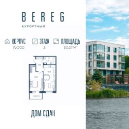 Апартамент 576 площадью 50,27 кв.м. в корпусе Wood с видом на улицу