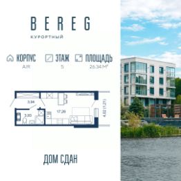 Апартамент 358 площадью 26,34 кв.м. в корпусе Air с видом во двор