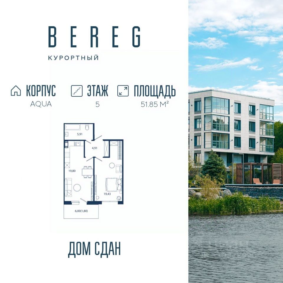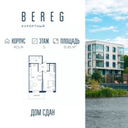 Апартамент 415 площадью 51,85 кв.м. в корпусе Aqua с видом во двор