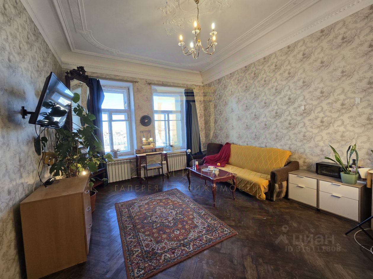 -Комната 24,6 кв.м в 7 -ми комнатной квартире, 2 окна, светлая, нра потолках лепнина и действующий камин.