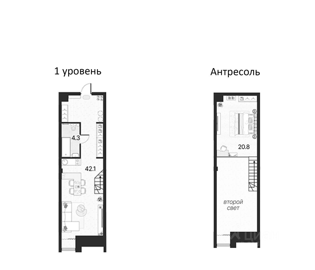 - Квартиры с премиум-отделкой и высокими потолками 4,6 м.